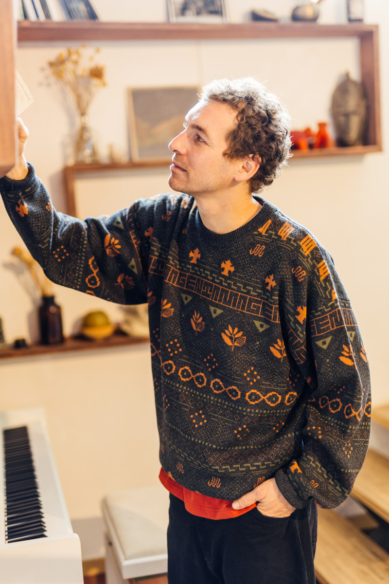AZTEC KNIT CREWNECK - DARK HEATHER
