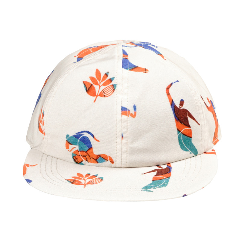 NATURAL ON ONE SIDE DARK NAVY ON THE OTHER SKATEBOARDING DANCE MOVES ON BOTH SIDES FLEXIBLE VISCOSE 6 PANEL HAT MADE IN EUROPE